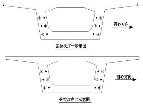 桥梁预应力张拉分为先张法和后张法,先张,现在般都采用整体张拉,所以不存在张拉顺序问题。后张要严格按照要求的张拉顺序,主要是为了保证构件不造成偏心受力和预应力值符合设计要求。张拉顺序应符合设计要求,当设计未规定时采取分批、分阶段对称张拉。